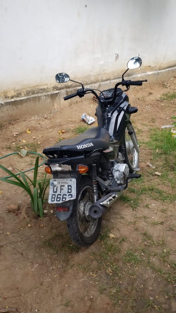 A Honda Pop, preta, pela placa QFB 8663-PB foi localizada nas imediações do CAIC escondida embaixo do mato.
