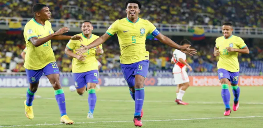 O Brasil se encontrou ao longo do jogo com o Peru, na estreia no Sul-Americano Sub-20, e conseguiu começar o torneio na Colômbia com o pé direito, com uma goleada de 3 a 0 construída em questão de 12 minutos. Todos os gols foram marcados no segundo tempo. Vitor Roque marcou duas vezes (um deles de pênalti) e Andrey Santos também balançou a rede.