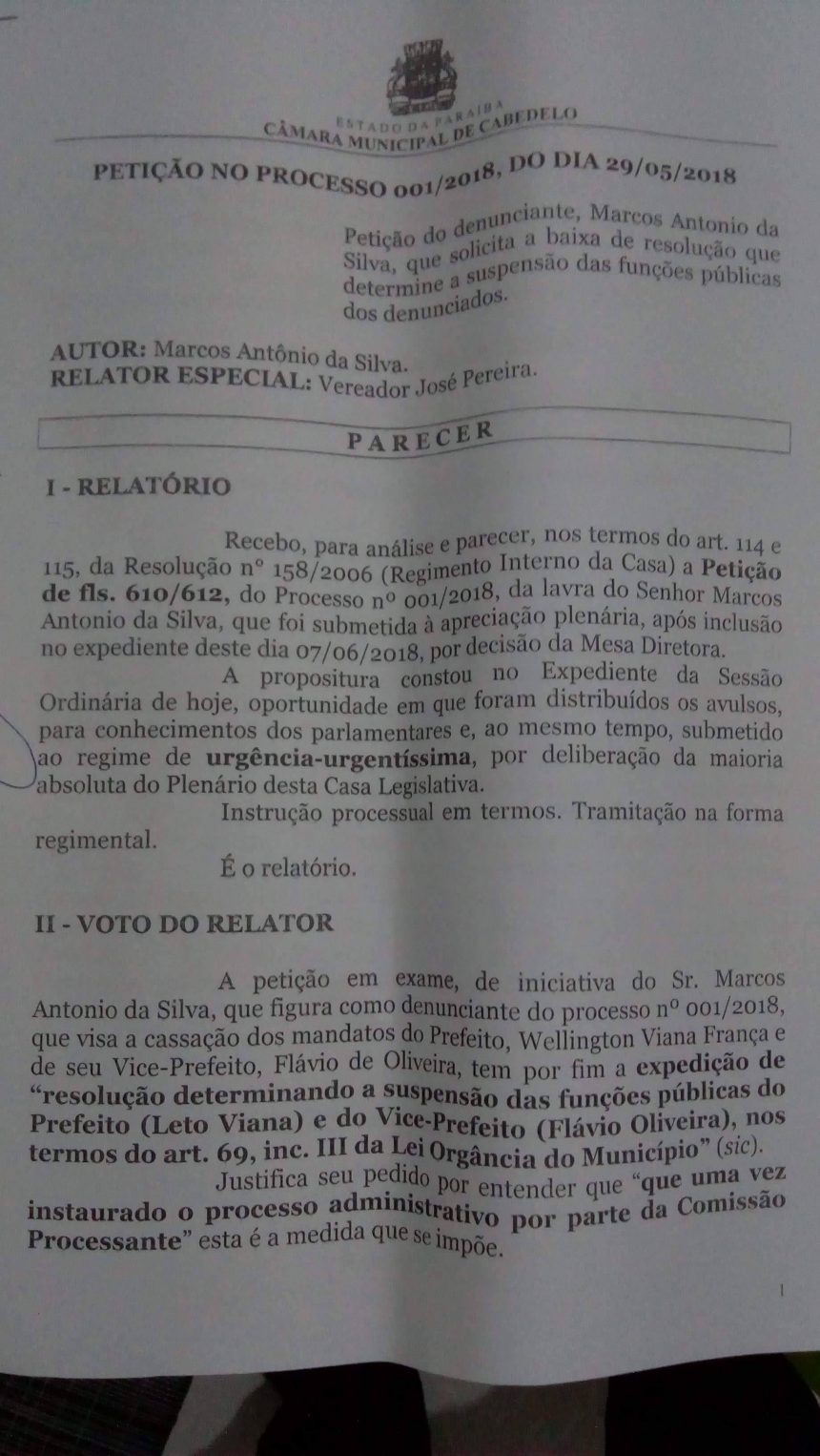 A Câmara Municipal de Cabedelo afastou, na noite desta quinta, o prefeito Leto Viana e o vice ,Flávio de Oliveira