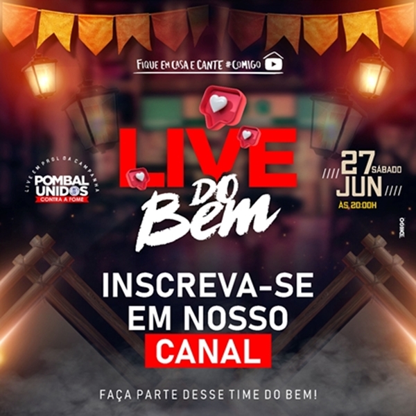 Acesse o YouTube e inscrevam-se no canal “Live do Bem, O Arraiá dos Filhos de Pombal-PB”.