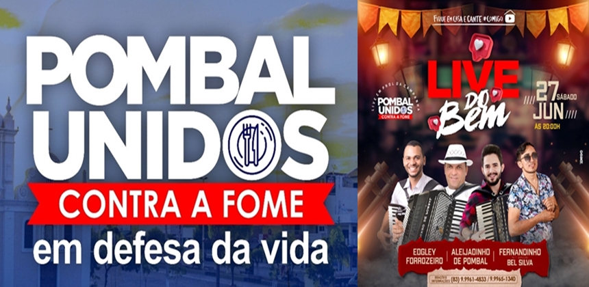 A Campanha Pombal Unidos Contra a Fome vem crescendo a cada dia e recebendo inúmeras doações e contribuições. E tentando aumentar o seu poder de ação, em buscar de ajudar os mais necessitados, nesse momento de pandemia mundial, surgiu a ideia de realizar um show virtual.