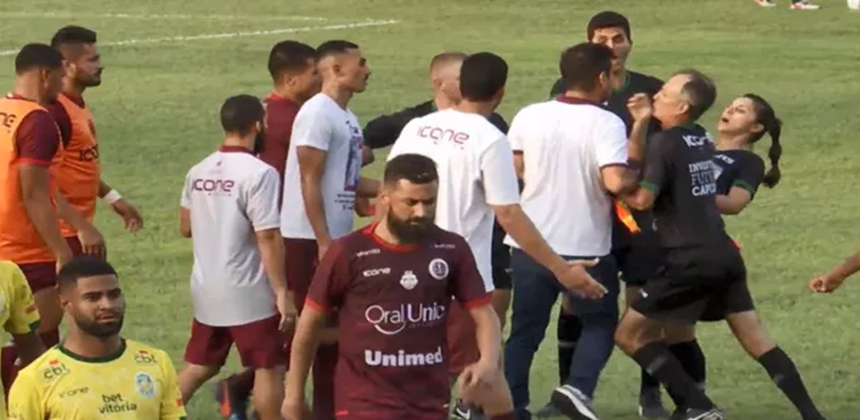 A assistente Marcielly Netto, do quadro da CBF, sofreu uma agressão do técnico da Desportiva Ferroviária, Rafael Soriano, na tarde deste domingo, no intervalo do jogo de volta das quartas de final do Campeonato Capixaba 2022.