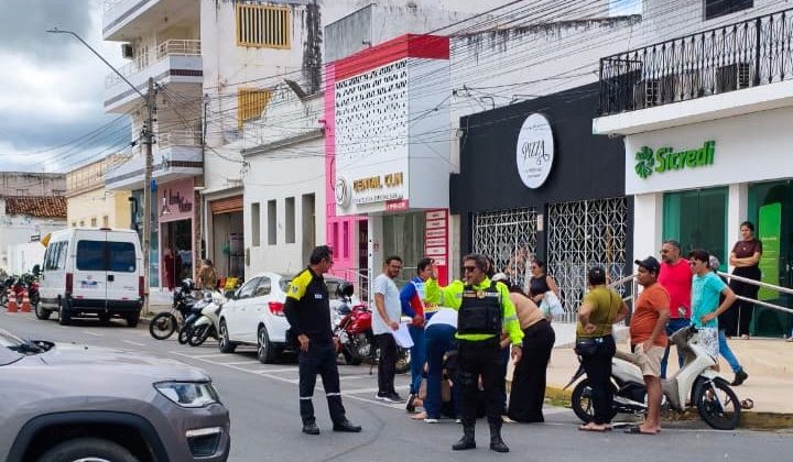 Um sinistro de trânsito foi registrado na manhã desta quinta-feira (23), por volta das 09h30m, no centro da cidade de Pombal.
