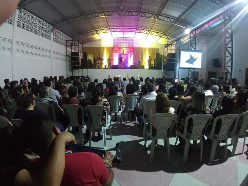 A apresentação aconteceu no espaço de eventos da própria paróquia, localizado ao lado da igreja.