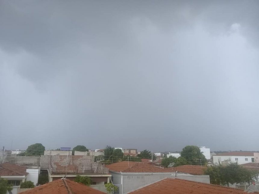 As 15h26m a temperatura assinalava 24º e o tempo permanecia nublado apontando possibilidade de nova pancada no decorrer do período ou durante a noite.