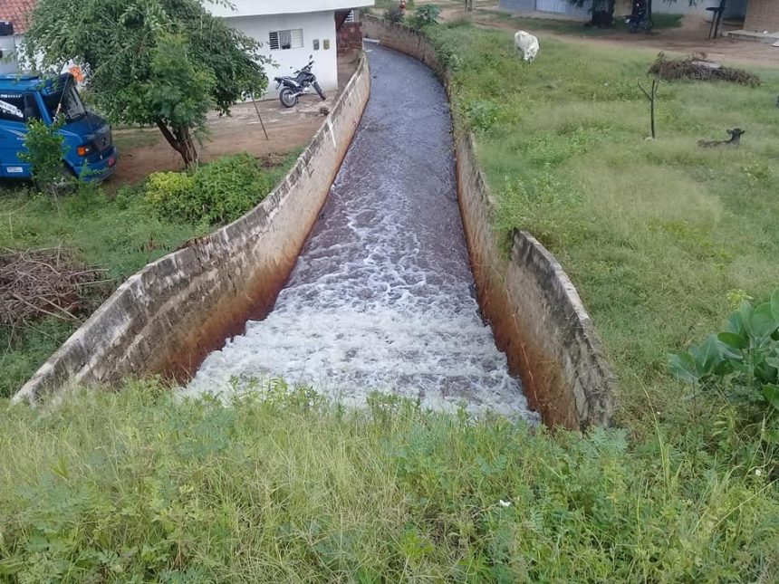 O açude “Nova Vida”, localizado no perímetro urbano da cidade de Pombal, amanheceu sangrando nesta segunda-feira (25.03).