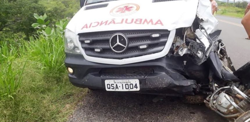 O sinistro envolveu uma ambulância do SAMU de Catolé do Rocha e uma motocicleta Honda Bros.
