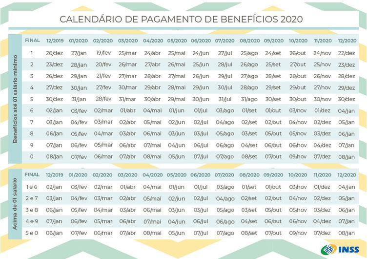 Cerca de 35 milhões de aposentados e pensionistas do Instituto Nacional do Seguro Social (INSS) já podem checar a data de depósito dos benefícios de 2020. Segundo o INSS, os depósitos seguirão a mesma sequência de anos anteriores. Confira o calendário completo aqui. As datas foram divulgadas na segunda-feira (16).