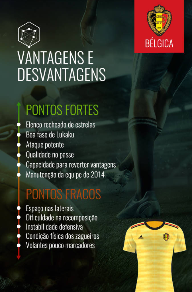 Dos 23 convocados da seleção belga, 16 jogaram a Copa do Mundo de 2014, sendo que 10 são considerados titulares. Dessa maneira, a ótima geração dos Diabos Vermelhos já tem certa experiência no torneio. Mais do que isso, de quatro anos para cá, De Bruyne, Lukaku, Eden Hazard, Courtois passaram de promessas para realidades, se tornando estrelas e protagonistas de seus clubes.