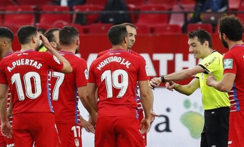 ESPORTES 25/04/2021 Juiz termina o jogo antes do tempo, e Sevilla tem de voltar do vestiário para jogar último minuto contra o Granada