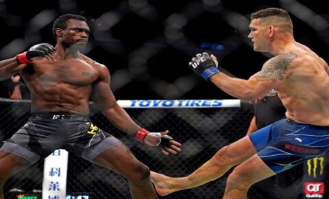 ESPORTES 25/04/2021 Chris Weidman quebra a perna em chute igual ao de Anderson Silva e perde para Uriah Hall
