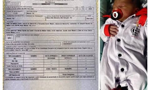 ESPORTES 14/03/2021 Torcedor fanático do Flamengo batiza filho de Gabriel Henrique Arrascaeta Ribeiro de Mattos, nome de 4 craques rubro-negros