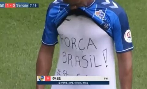 ESPORTES 10/05/2020 Atacante faz gol no Campeonato Coreano e presta homenagem com camisa: “Força, Brasil!”