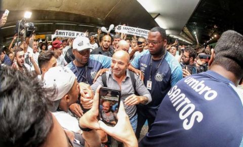 Torcida recebe o técnico do Santos com festa