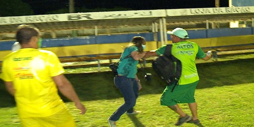 A Federação de Futebol do Piauí (FFP) suspendeu permanentemente a entrada de João Paulo dos Anjos Abreu nos estádios com jogos promovidos pela entidade e a Confederação Brasileira de Futebol (CBF). O homem foi identificado em imagens agredindo a repórter Emanuele Madeira, que registrava uma confusão na partida Altos x Fluminense-PI, pelo Campeonato Piauiense. João Paulo tirou o celular à força da mão da jornalista e usou a violência para impedir que o aparelho fosse recuperado.