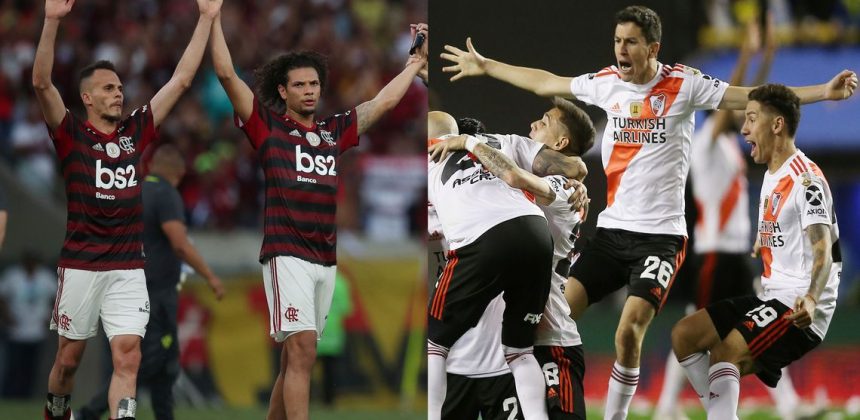 Uma decisão de Libertadores entre um time do Brasil e outro da Argentina não é uma novidade na história da competição. Elas já aconteceram em 14 oportunidades, com cinco vitórias brasileiras e nove argentinas. O Flamengo nunca esteve nesta situação, enquanto o River já encontrou um time brasileiro em confrontos decisivos, foi no ano de 1976, quando o Cruzeiro acabou campeão.