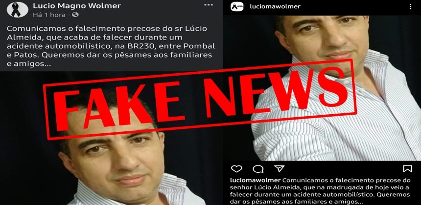 “Comunicamos o falecimento precose do sr Lúcio Almeida, que acaba de falecer durante um acidente automobilístico, na BR230, entre Pombal e Patos. Queremos dar os pêsames aos familiares e amigos…”