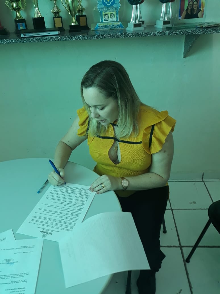 Ao lado do Secretário de Educação do município Romério Ferreira, a prefeita do município de São Bentinho Giovana Olímpio, assinou na manhã desta quinta-feira (07), a ordem de serviço de reforma e ampliação da Escola Municipal Joaquina Casimira da Conceição, no valor de 286 mil reais.