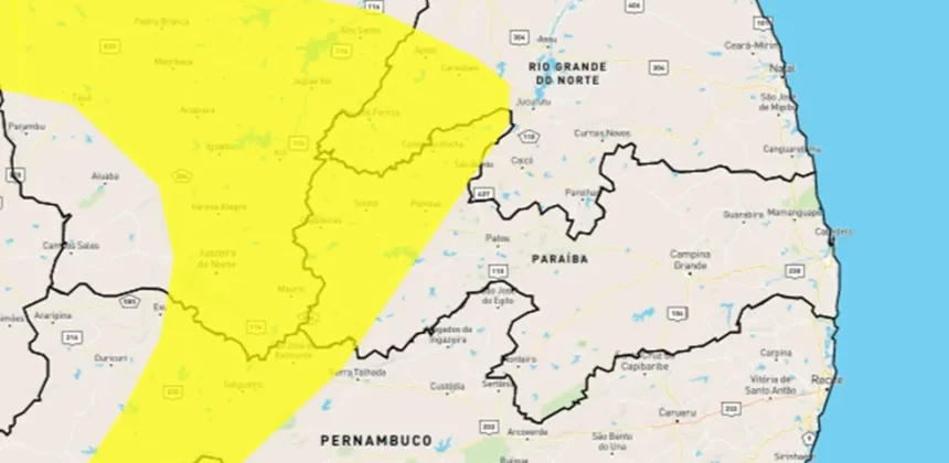 O Instituto Nacional de Meteorologia (Inmet) emitiu um alerta amarelo, de perigo potencial em decorrência de baixa umidade em 61 cidades da Paraíba. O aviso meteorológico é válido entre às 10h30 até 20h deste sábado (10).