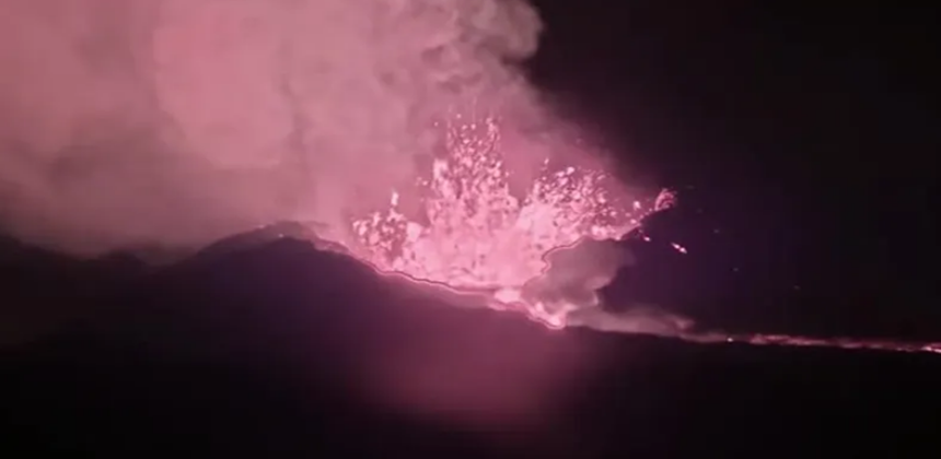 Um vídeo do Observatório de Vulcões do Havaí do Serviço Geológico dos Estados Unidos (USGS) mostrou lava saindo do vulcão durante uma erupção na noite de domingo (4). A agência informou na sexta-feira que a frente principal do fluxo de lava estava a 5,2 quilômetros da Rodovia Daniel K. Inouye, também conhecida como Saddle Road, e poderia alcançá-la em uma semana.