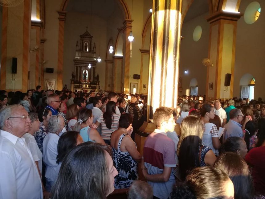 A matriz da cidade ficou completamente cheia e por falta de espaço a realização foi acompanhada por muitos no espaço externo do templo principal da cidade.