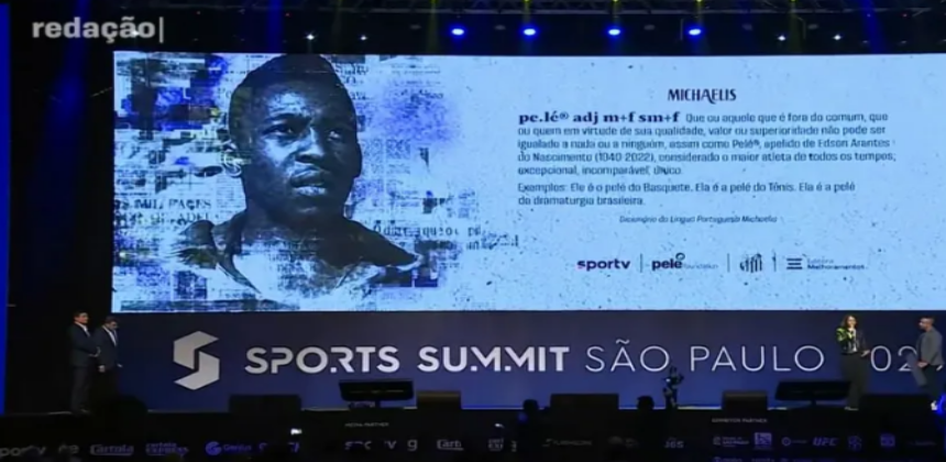 Durante o evento Summit Sports, realizado no Pacaembu, nesta quarta-feira, Pelé foi homenageado mais uma vez. A família do Rei do Futebol foi presenteada com uma placa com o verbete.
