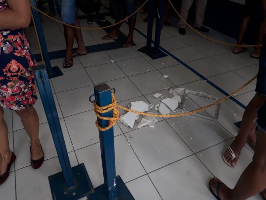 O fato chamou a atenção de muitos já que a mesma se encontrava na fila do autoatendimento, quando a peça da estrutura veio abaixo.