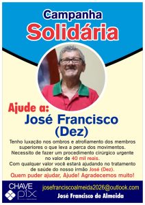 Sendo assim, “Dez”, como é carinhosamente chamado, está pedindo a colaboração de todos que pode ser repassada mediante PIX.