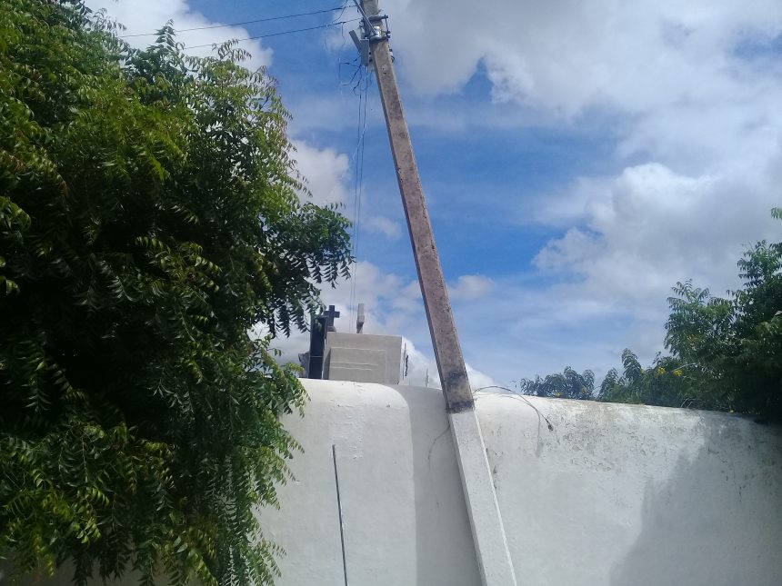 Apesar de justificar que a responsabilidade é da Energisa, cobra também um posicionamento da prefeitura já que o poste de iluminação está colado na parede da murada da necrópole.