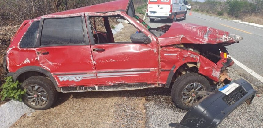 O fato aconteceu no Km 14, da BR-427, por volta das 13h20. Na ocasião seguiam no veículo três ocupantes, de uma mesma família, todos residentes no município de Paulista.