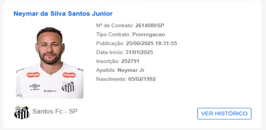 A prorrogação do contrato do meia-atacante Neymar com o Santos foi publicada, na última quarta-feira, no Boletim Informativo Diário (BID) da CBF. O novo vínculo do craque com o Peixe é válido até 31 de dezembro deste ano.