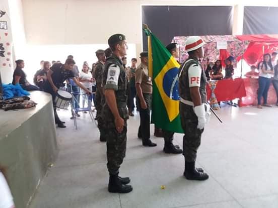 Outro aspecto enaltecido pela presença do Tiro de Guerra foi à solenidade marcando a entrada do Pavilhão Nacional e o canto do Hino Nacional com os alunos da instituição de ensino.