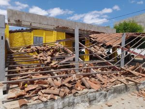 Na manhã desta quinta-feira (25), um veiculo baú pertencente a uma empresa de entregas atingiu parte da estrutura frontal de um bar localizado no bairro ‘Janduhy Carneiro”.
