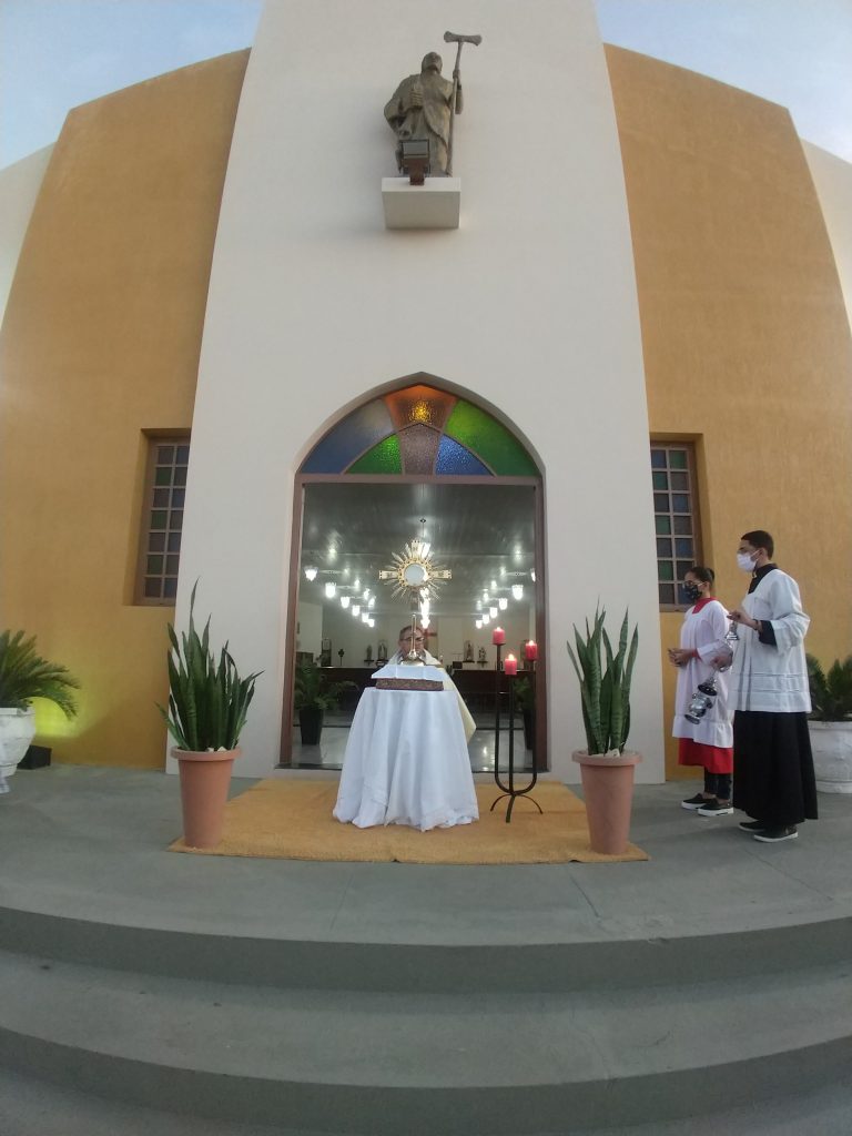 A missa foi celebrada na Igreja de São Judas Tadeu em Pombal-PB, com transmissão ao vivo da Rádio Bom Sucesso 101.7 FM e transmissão da procissão que percorreu as principais ruas da cidade pela rede social instagram @bomsucesso101fm.