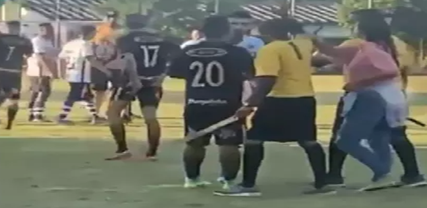 A briga ocorreu em uma partida entre os times Israel Futebol Clube e Figueira, em um campo no Jardim Pinheiros. No vídeo, é possível ver pessoas tentando conter o bandeirinha que segura o facão – assista acima.