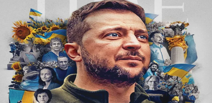 Ao se recursar a deixar a capital da Ucrânia, Kiev, no início da guerra, quando a cidade foi alvejada por uma série de bombardeios da Rússia, Zelensky, um ex-comediante, reuniu seus compatriotas em transmissões da capital e viajou por sua nação devastada pela guerra, observou a publicação ao conceder seu título anual.